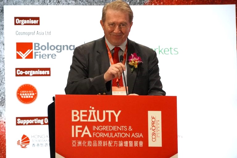 インフォーマグループ コスモプロフディレクターのMichael Duck氏が挨拶。「BIFAは科学的根拠を備えた素材革新と持続可能な製造技術、そしてアジア各国の研究者間のコラボレーションを結ぶプラットフォーム」と説明。コスモプロフアジアのグローバルネットワークと結合することで、今後アジア・太平洋の美容産業の中心的な位置付けになっていくと話した。