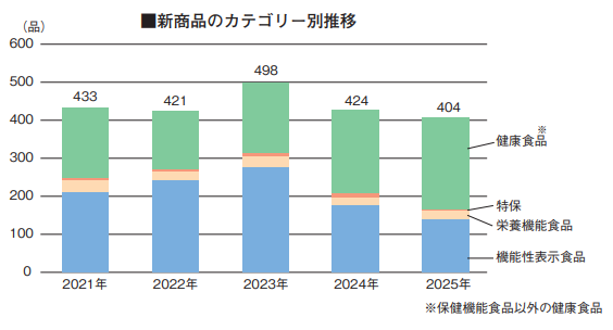 25年の新商品数、5%減の約400品 機能性表示食品は34%に 採用素材トップ「ビタミンC」